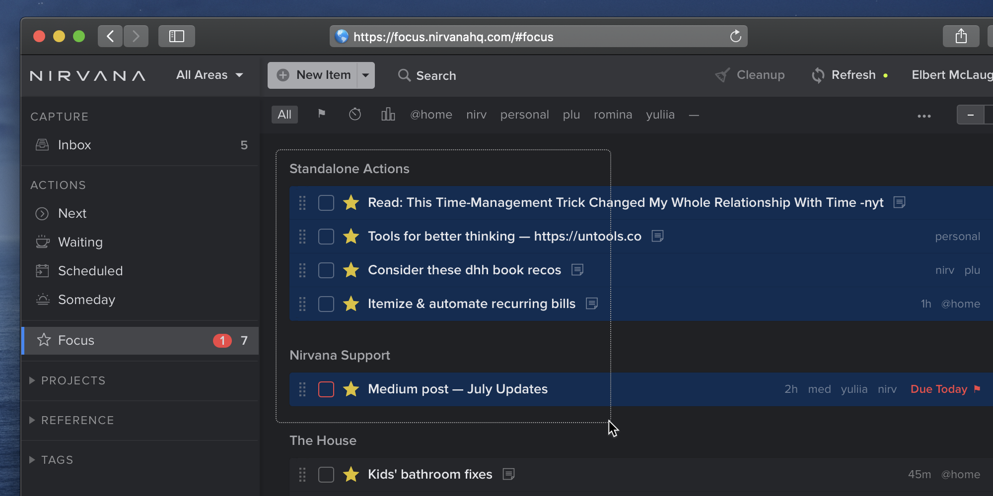 - option+up / option+down to move selected tasks (mac)